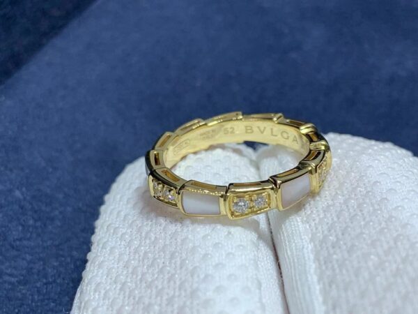 Bulgari Serpenti Viper band Ring in 18 kt yellow gold with Mother of Pearls and pavé diamonds Ref.: 353225