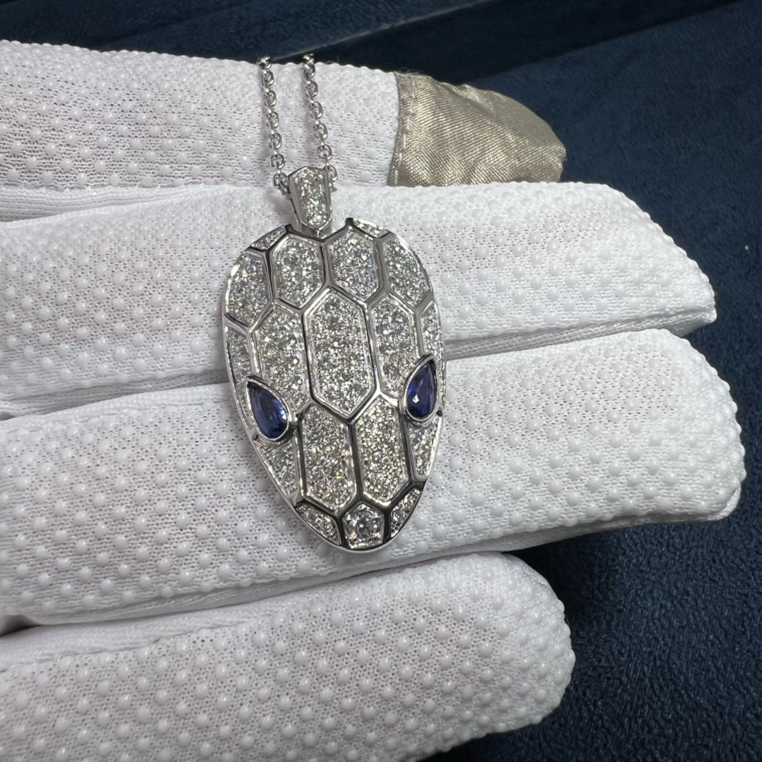 Bvlgari Serpenti Sapphire Eyes Pave 18K White Gold Diamonds Necklace 353529