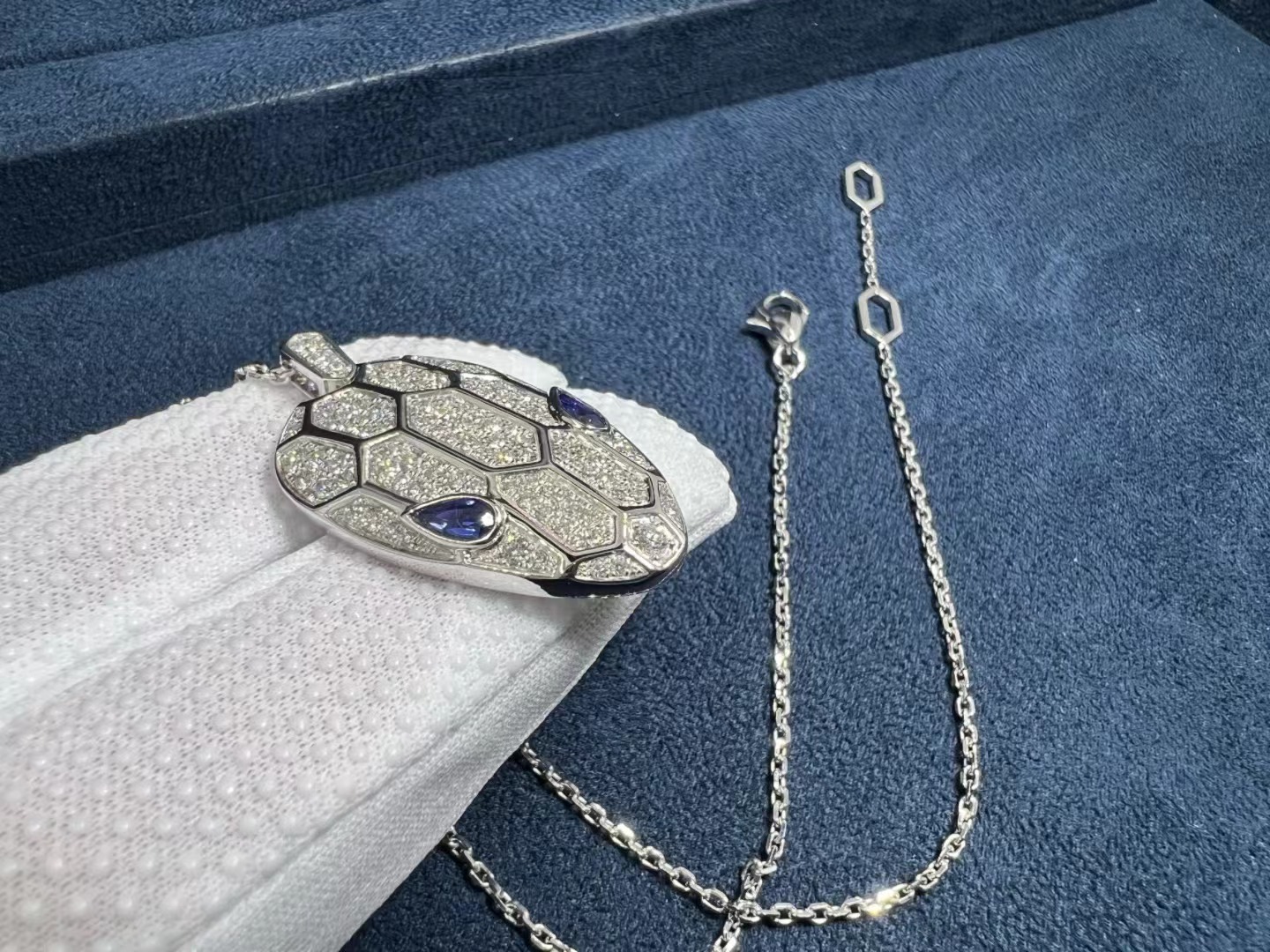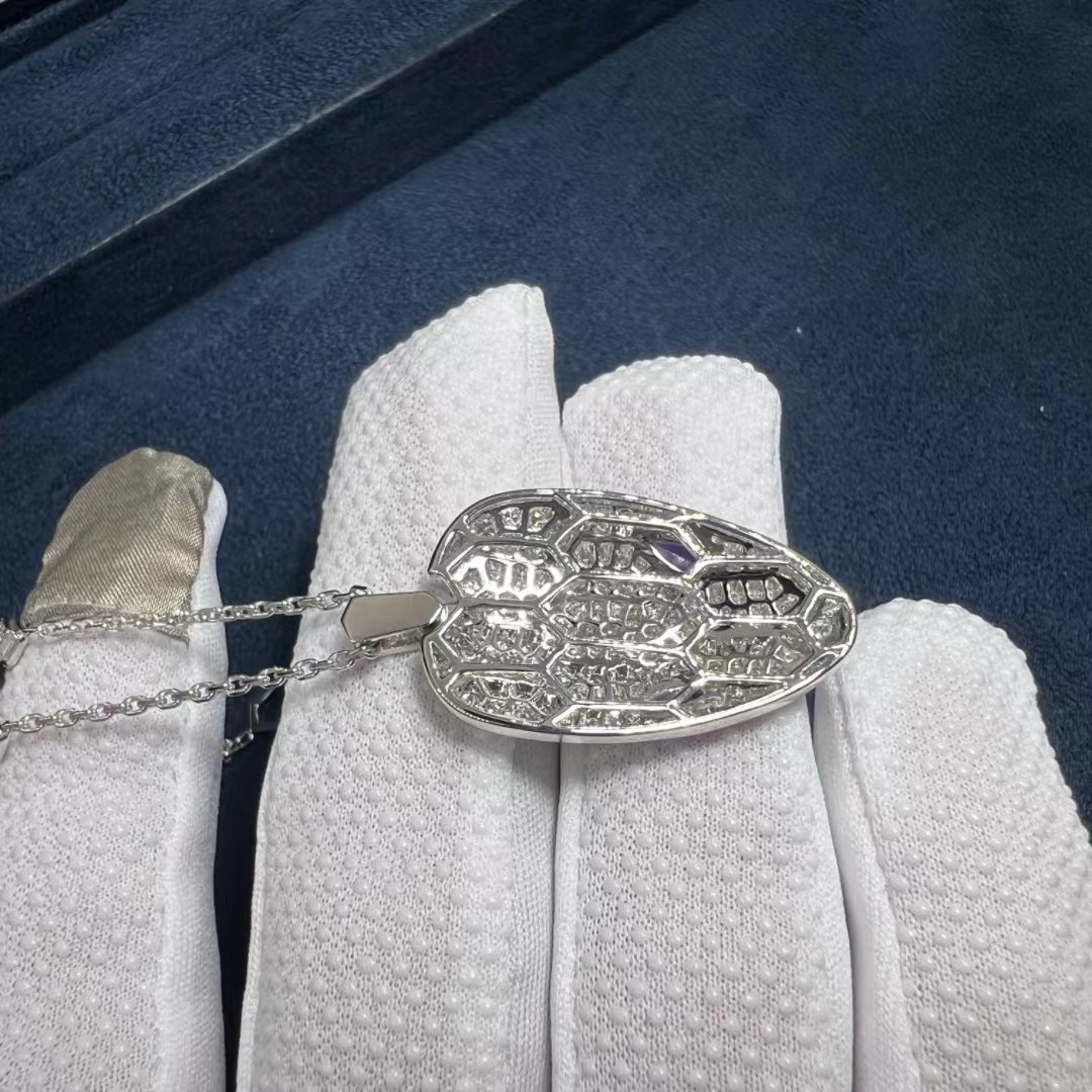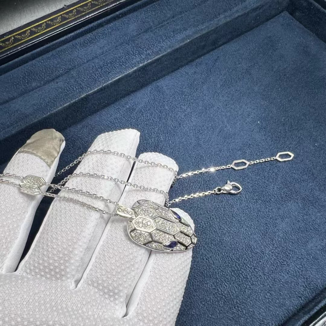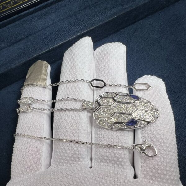 Be the first to review “Bvlgari Serpenti Sapphire Eyes Pave 18K White Gold Diamonds Necklace 353529”