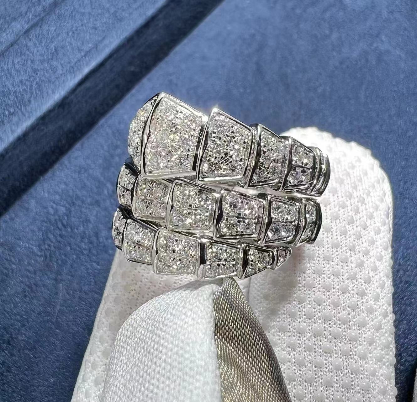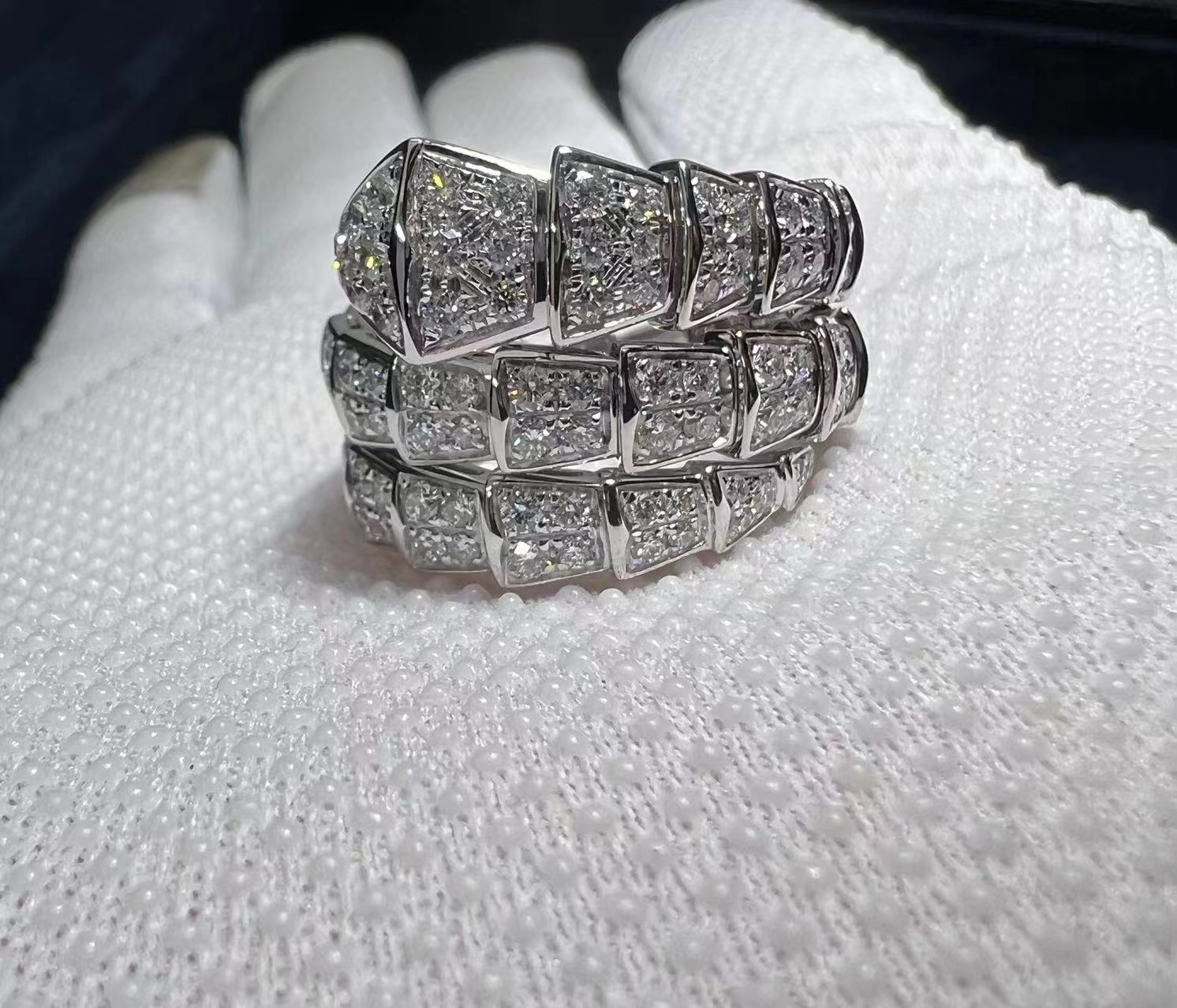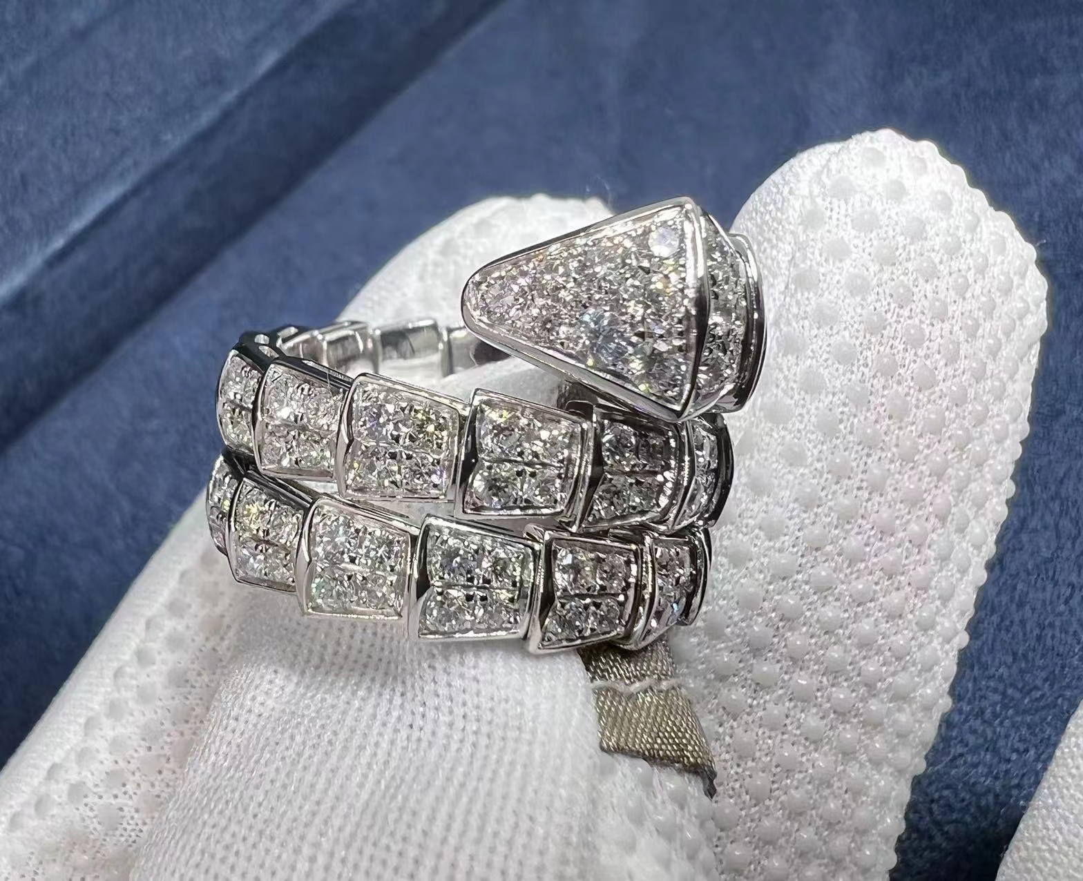 We guarantee all of our custom made jewelry to be 1:1 quality, and that what you see is absolutely what you get. Continuing to serve our customers and gain trust in our name is our mission. What you see pictured of this 1:1 Quality Bvlgari Serpenti Viper Two-Coil 18K White Gold Full Diamond Paved Snake Ring is the actual item you will receive. Every detail possible can be seen in our pictures and we are proud of that, we here have nothing to hide. We want to show you every beautiful angle and edge of our inventory so you fall in love with the piece that’s just right for you.