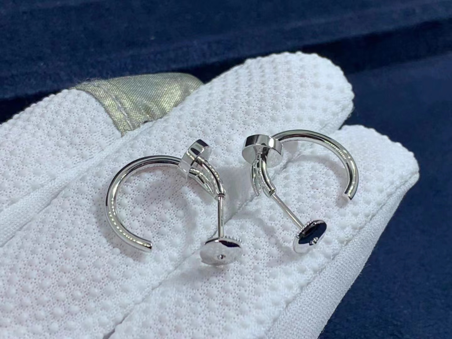 We guarantee all of our custom made jewelry to be 1:1 quality, and that what you see is absolutely what you get. Continuing to serve our customers and gain trust in our name is our mission. What you see pictured of this 1:1 Quality Custom Cartier Juste Un Clou 18K White Gold Earrings is the actual item you will receive. Every detail possible can be seen in our pictures and we are proud of that, we here have nothing to hide. We want to show you every beautiful angle and edge of our inventory so you fall in love with the piece that’s just right for you.