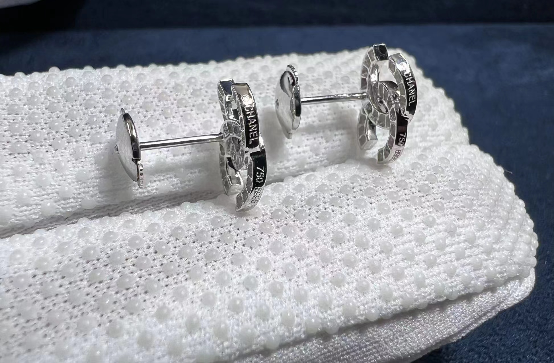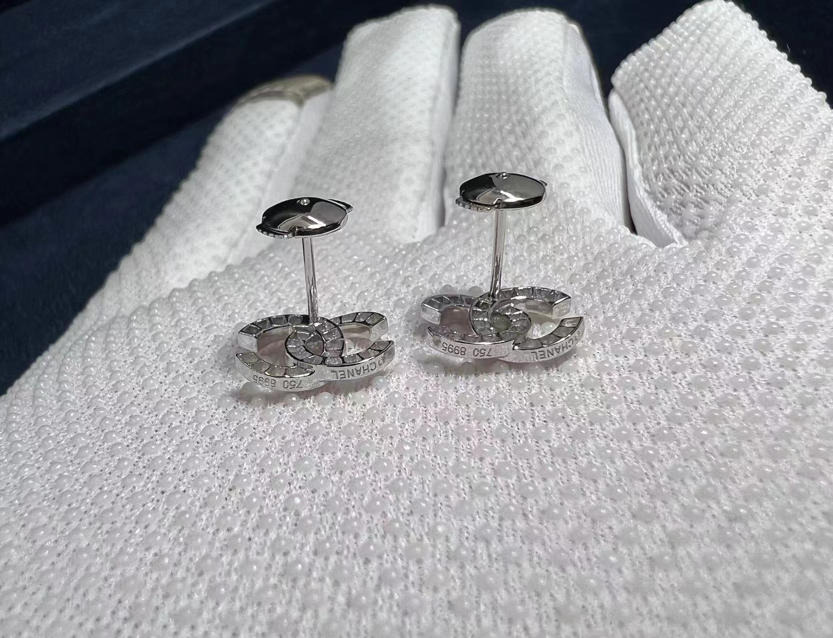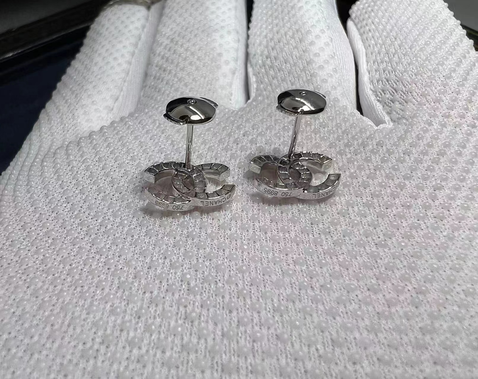 Chanel CC Logo Earrings Small Version 18k White Gold, Diamonds