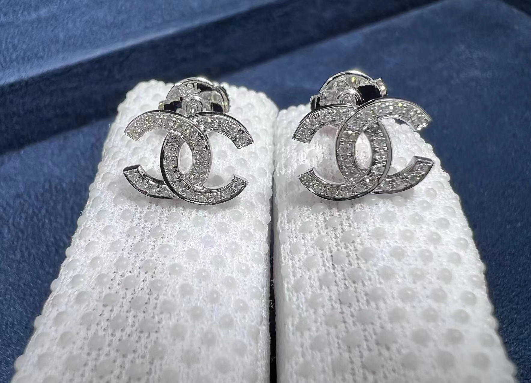 We guarantee all of our custom made jewelry to be 1:1 quality, and that what you see is absolutely what you get. Continuing to serve our customers and gain trust in our name is our mission. What you see pictured of this 1:1 Quality Chanel CC Logo Earrings Small Version 18k White Gold, Diamonds is the actual item you will receive. Every detail possible can be seen in our pictures and we are proud of that, we here have nothing to hide. We want to show you every beautiful angle and edge of our inventory so you fall in love with the piece that’s just right for you.