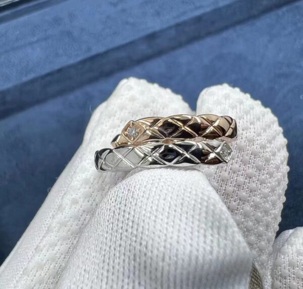 Chanel Coco Crush Toi Et Moi Ring Quilted Motif, Small Version, 18k White and Beige Gold, Diamonds J11971
