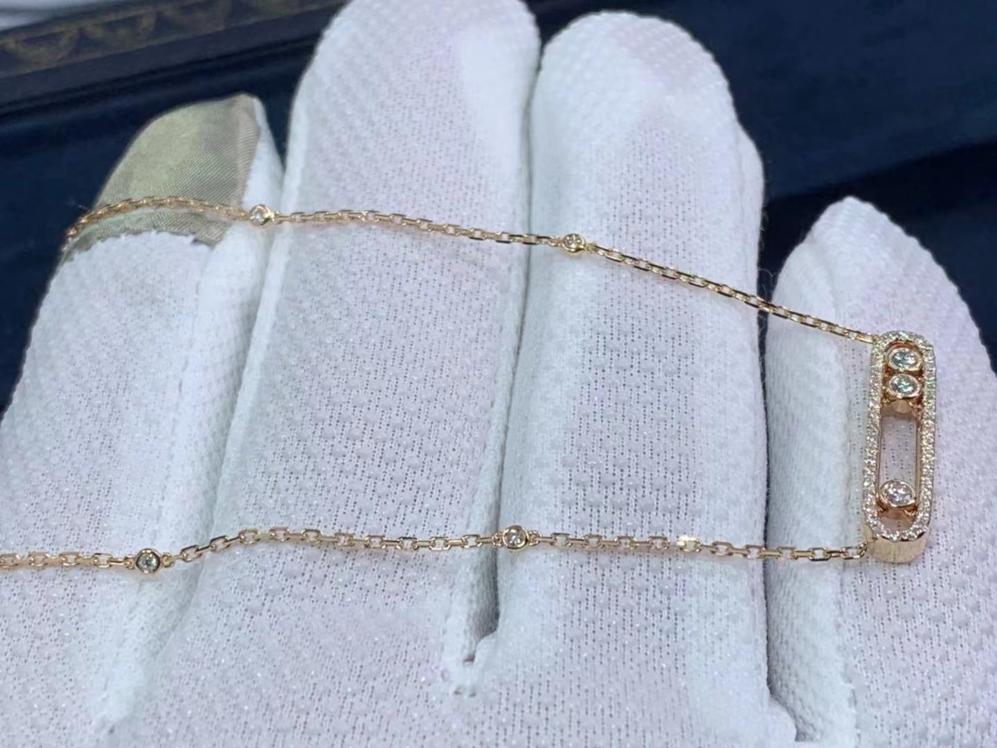 We guarantee all of our custom made jewelry to be 1:1 quality, and that what you see is absolutely what you get. Continuing to serve our customers and gain trust in our name is our mission. What you see pictured of this 1:1 Quality Messika 18k Rose Gold Baby Move Pavé Diamond Pendant Necklace is the actual item you will receive. Every detail possible can be seen in our pictures and we are proud of that, we here have nothing to hide. We want to show you every beautiful angle and edge of our inventory so you fall in love with the piece that’s just right for you.