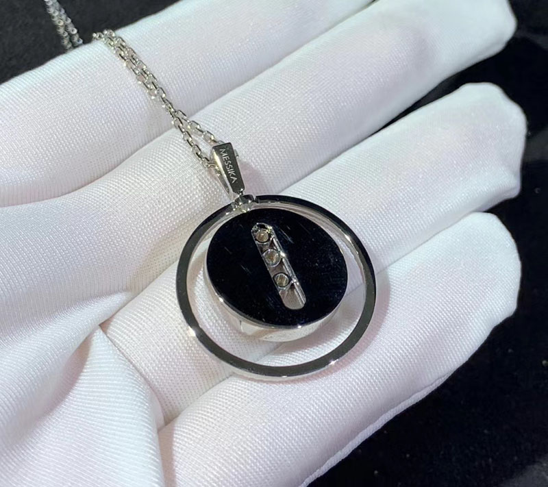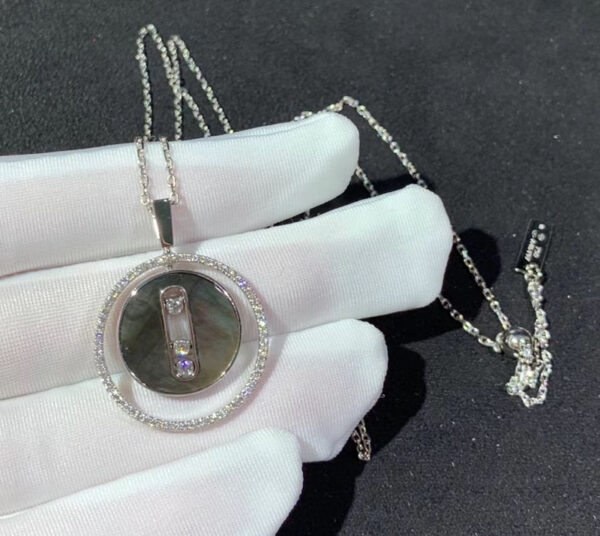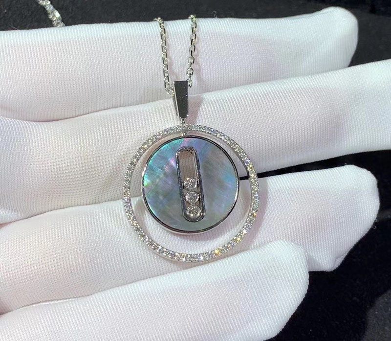 Messika 18K White Gold Grey Mother-of-pearl Diamond Lucky Move MM Pendant Necklace