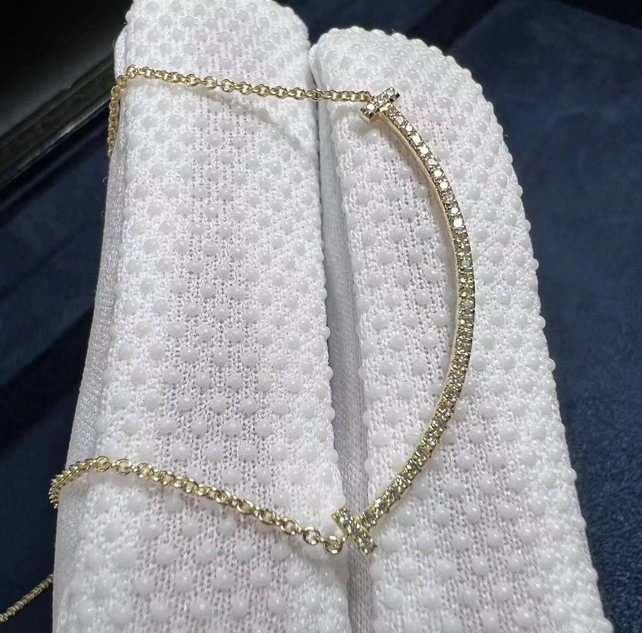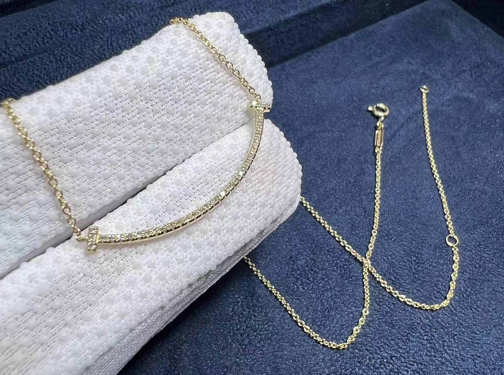 We guarantee all of our custom made jewelry to be 1:1 quality, and that what you see is absolutely what you get. Continuing to serve our customers and gain trust in our name is our mission. What you see pictured of this 1:1 Quality Tiffany T Smile Pendant in Yellow Gold with Diamonds, Small is the actual item you will receive. Every detail possible can be seen in our pictures and we are proud of that, we here have nothing to hide. We want to show you every beautiful angle and edge of our inventory so you fall in love with the piece that’s just right for you.
