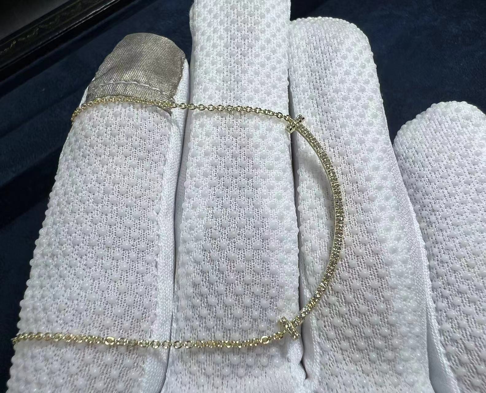 Custom Tiffany 18k Yellow Gold Diamond T Wire Bracelet