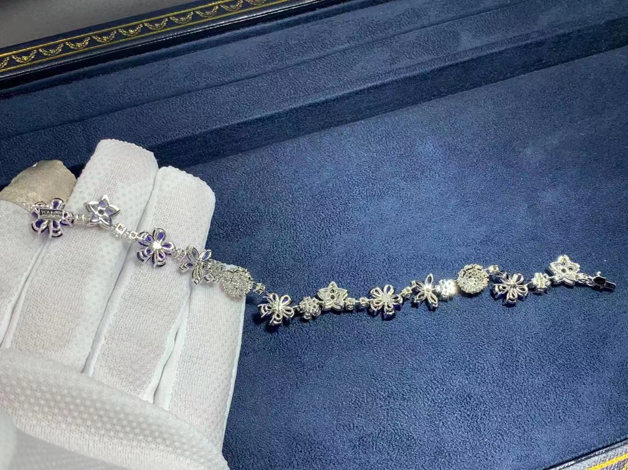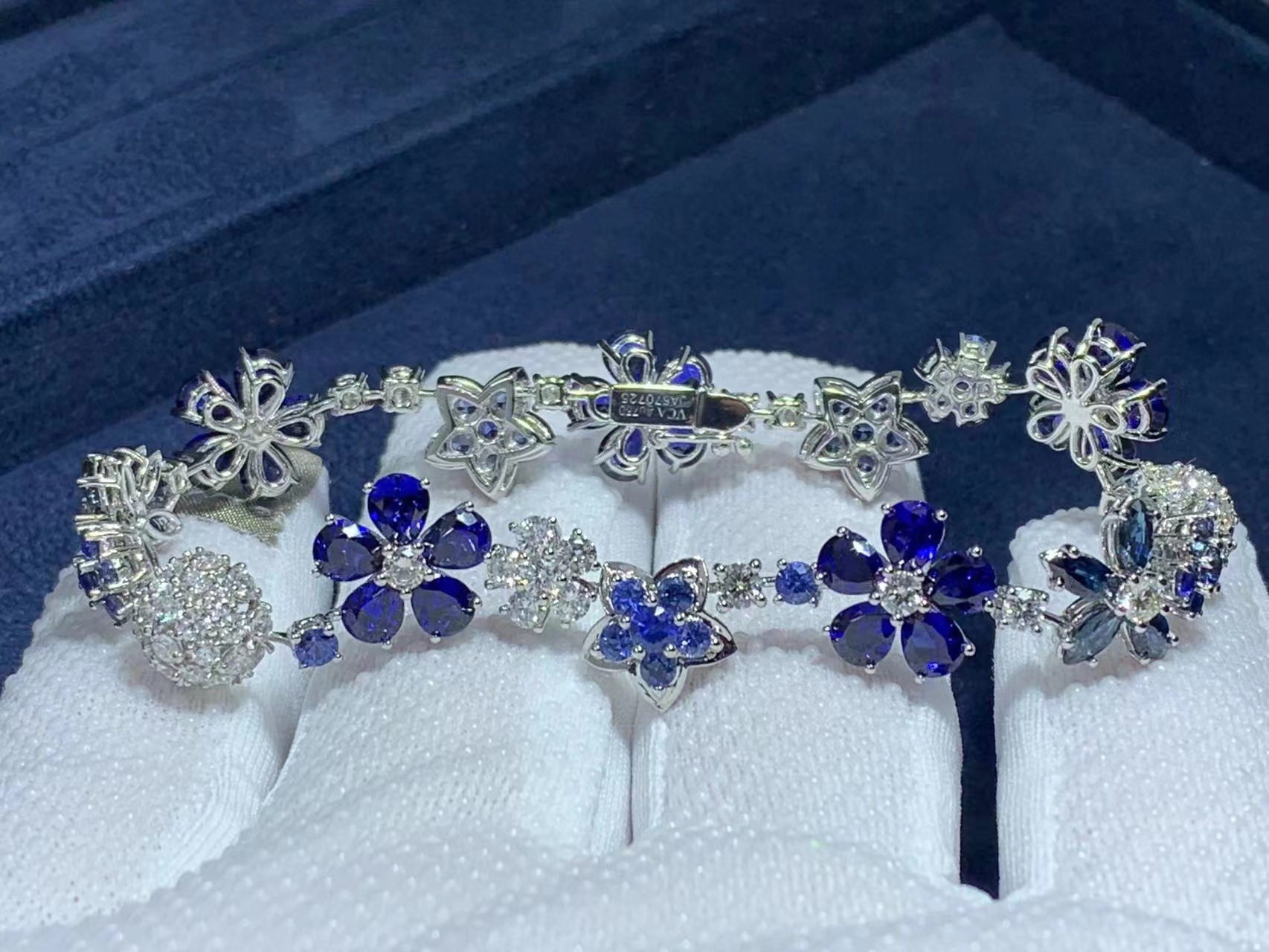 Top Quality Custom Van Cleef & Arpels 18K White Gold Sapphires Diamonds Folie des Prés Bracelet VCARP05A00