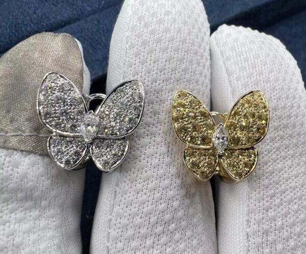 Van Cleef 18k Gold Diamond & Yellow Sapphire Two Butterfly Earrings VCARB15100