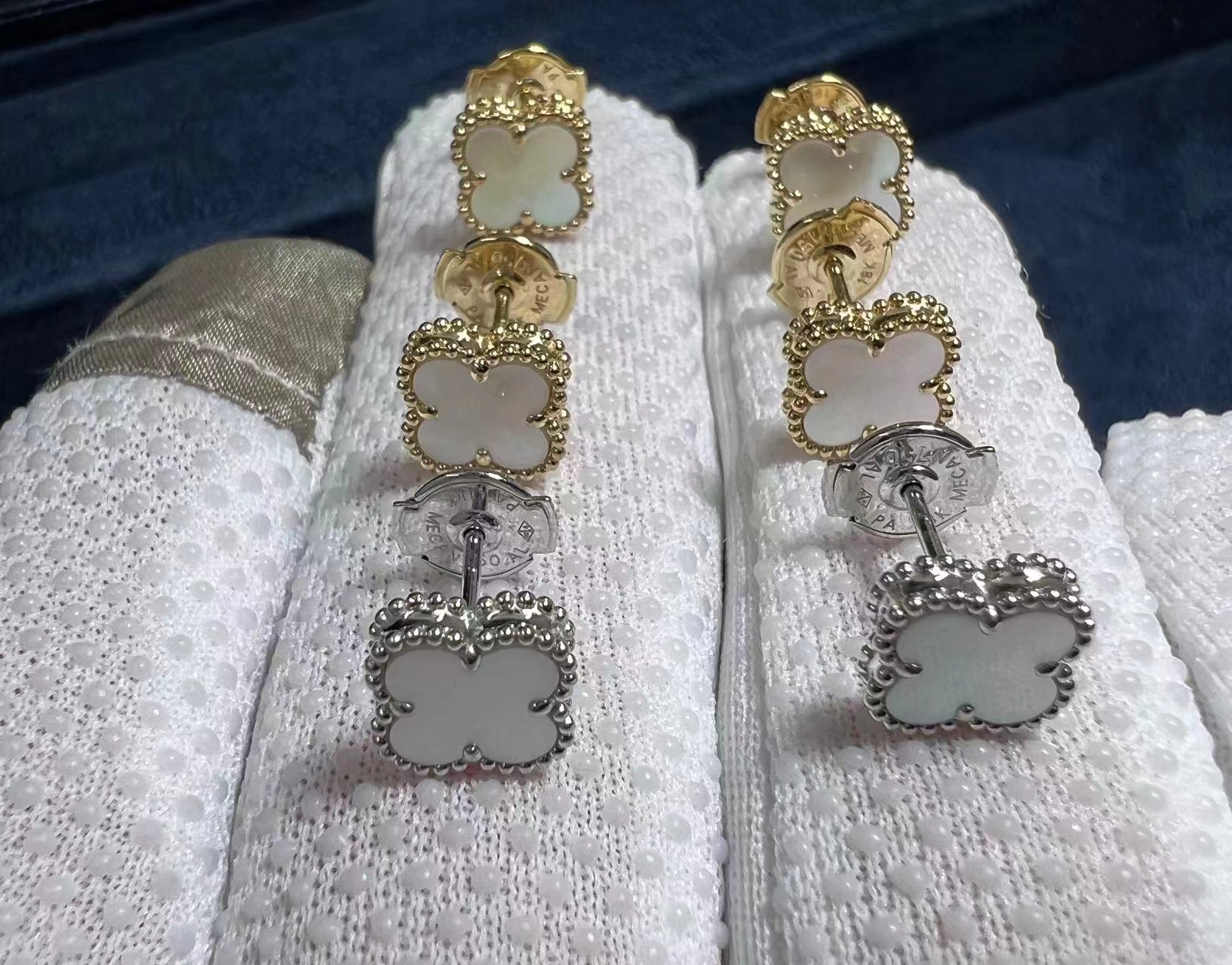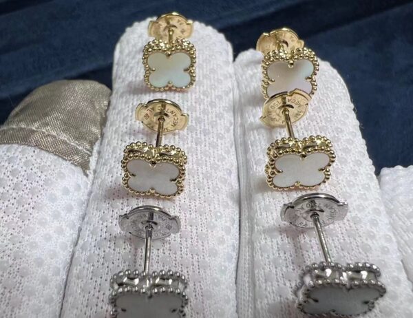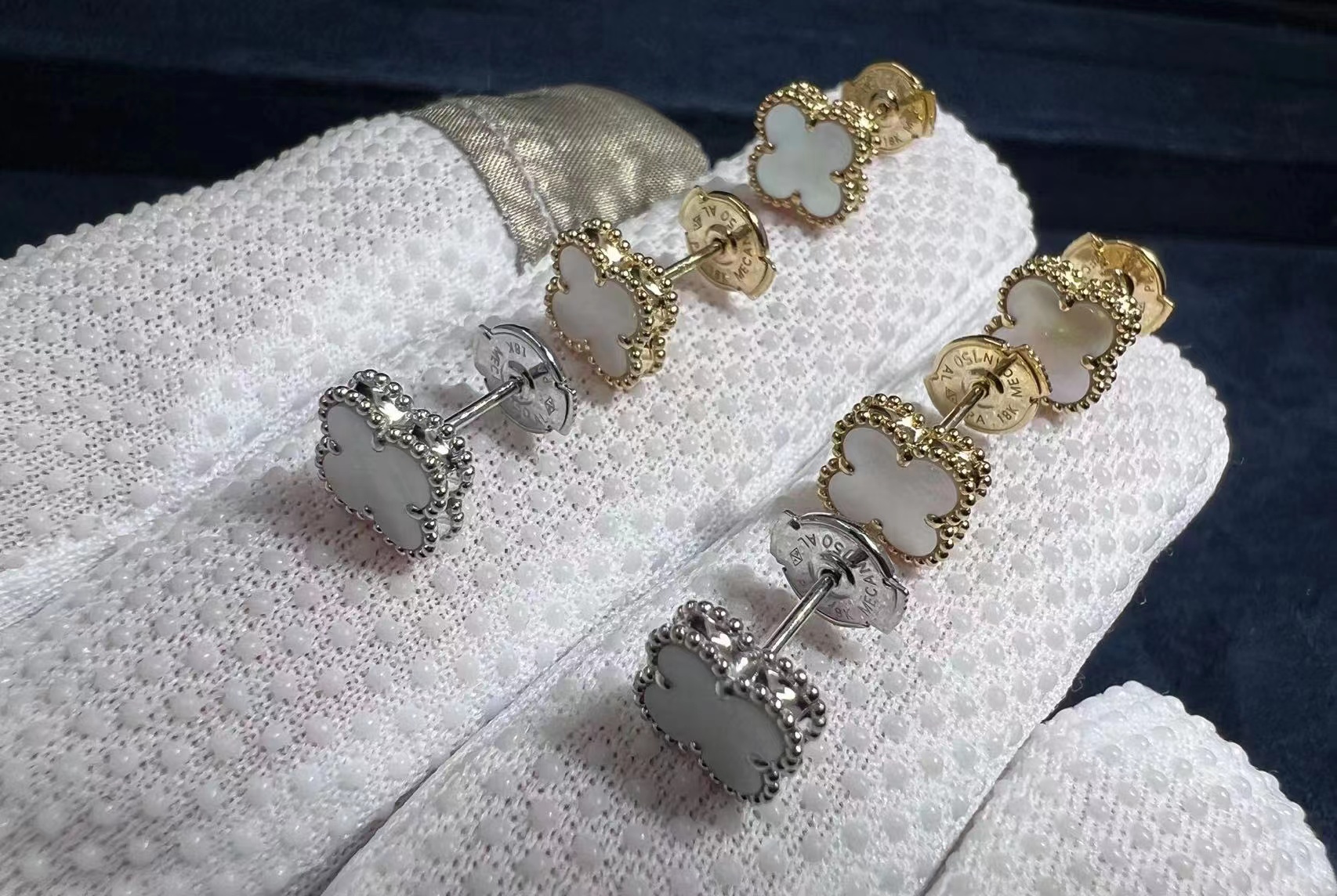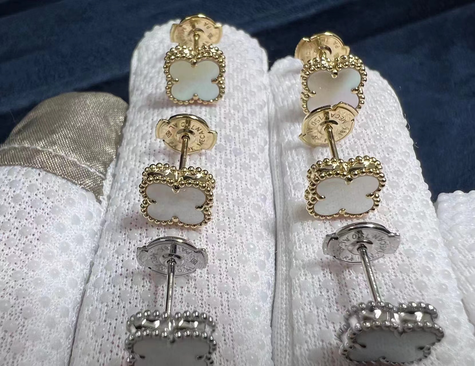 We guarantee all of our custom made jewelry to be 1:1 quality, and that what you see is absolutely what you get. Continuing to serve our customers and gain trust in our name is our mission. What you see pictured of this 1:1 Quality Van Cleef & Arpels Sweet Alhambra Earstuds Yellow Gold, Mother-of-pearl VCARA44800 is the actual item you will receive. Every detail possible can be seen in our pictures and we are proud of that, we here have nothing to hide. We want to show you every beautiful angle and edge of our inventory so you fall in love with the piece that’s just right for you.