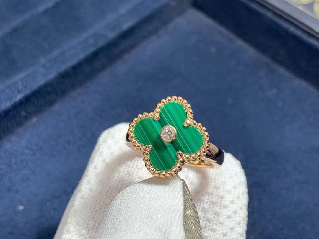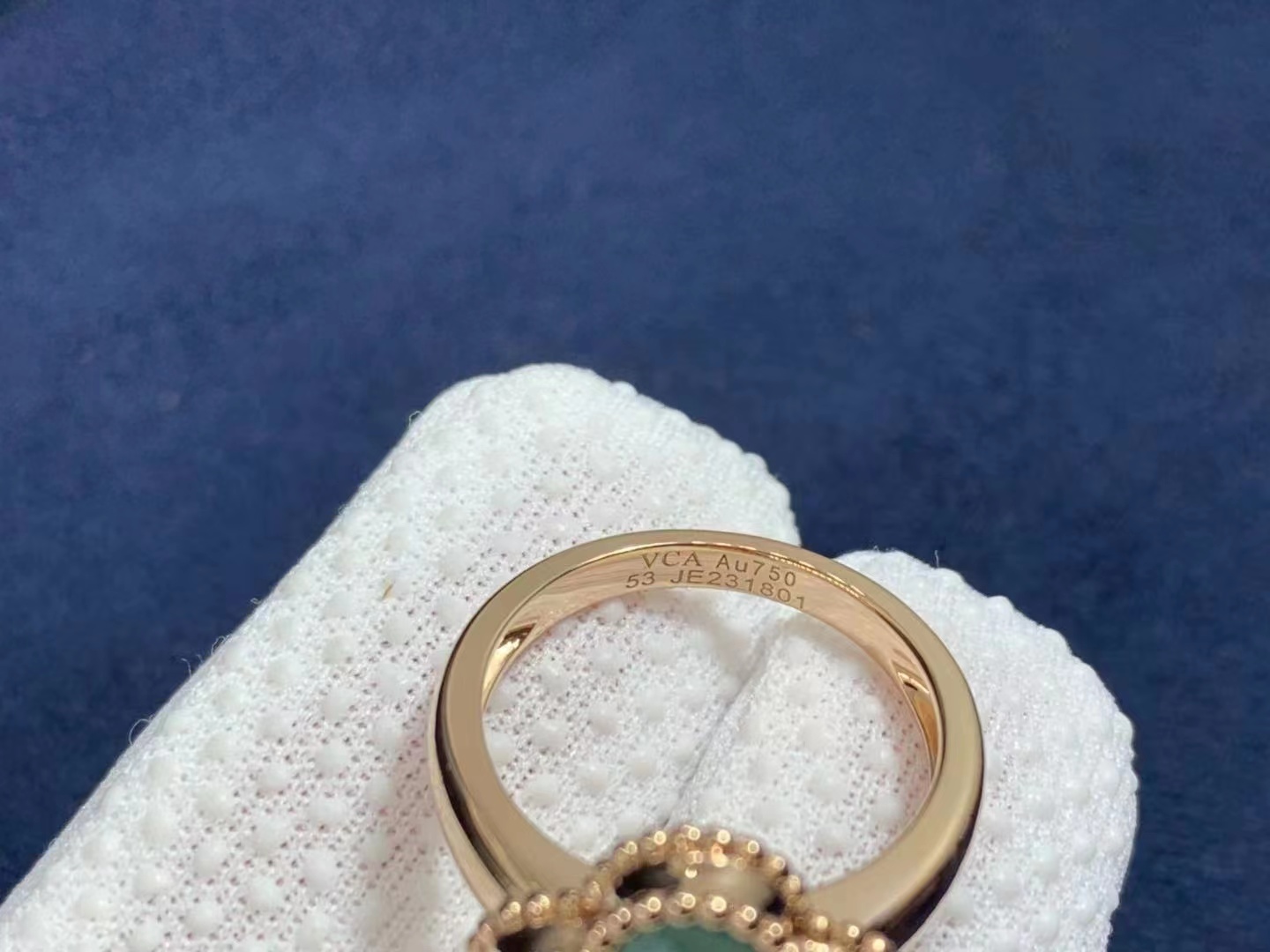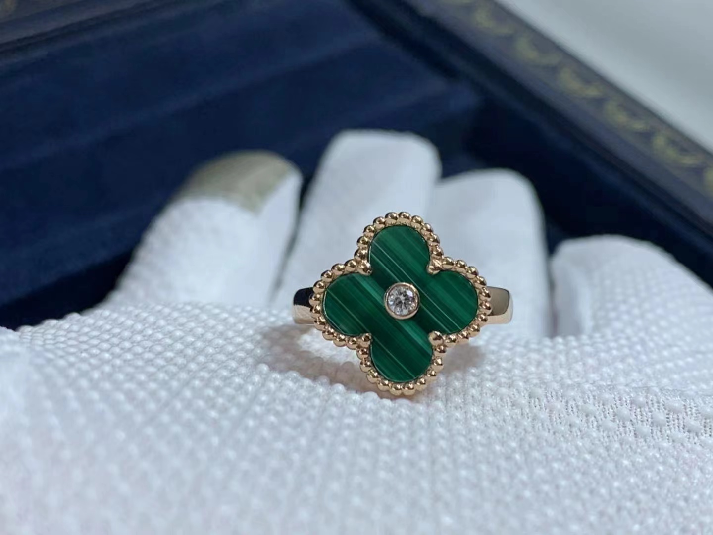 We guarantee all of our custom made jewelry to be 1:1 quality, and that what you see is absolutely what you get. Continuing to serve our customers and gain trust in our name is our mission. What you see pictured of this 1:1 Quality Van Cleef & Arpels Vintage Alhambra 18K Rose Gold Diamond Malachite Ring is the actual item you will receive. Every detail possible can be seen in our pictures and we are proud of that, we here have nothing to hide. We want to show you every beautiful angle and edge of our inventory so you fall in love with the piece that’s just right for you.
