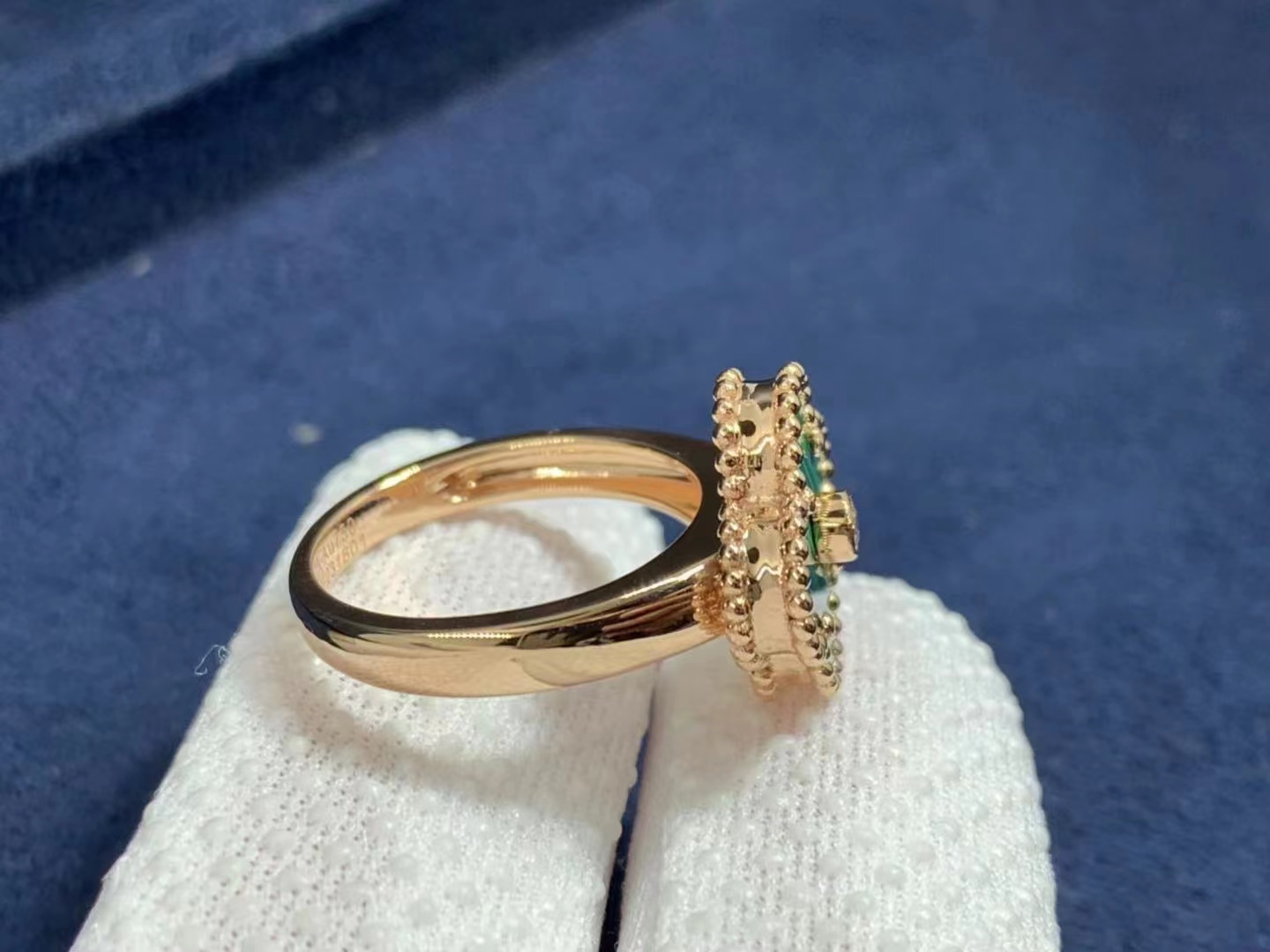 Van Cleef & Arpels Vintage Alhambra 18K Rose Gold Diamond Malachite Ring VCARO3QM00