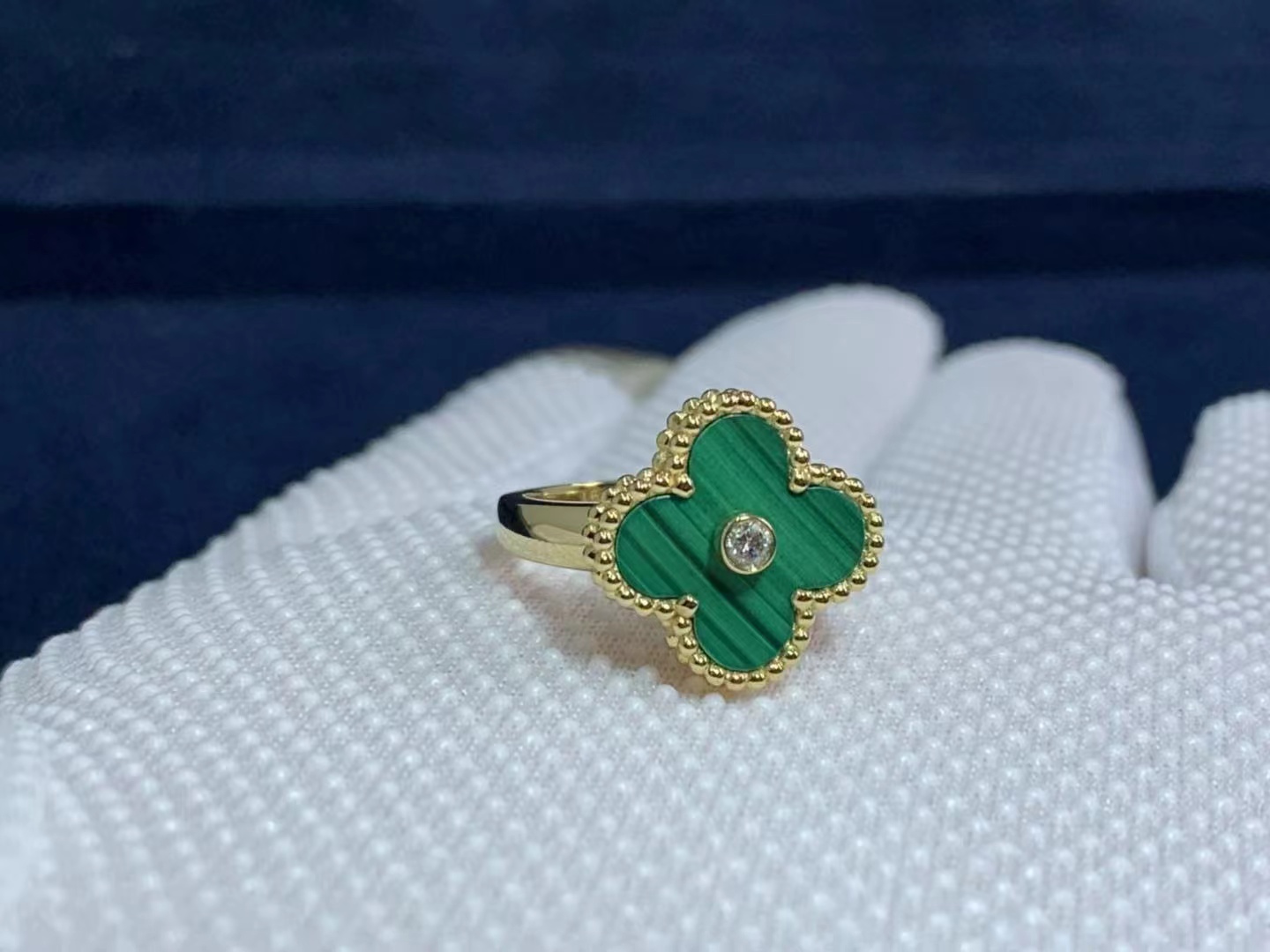 We guarantee all of our custom made jewelry to be 1:1 quality, and that what you see is absolutely what you get. Continuing to serve our customers and gain trust in our name is our mission. What you see pictured of this 1:1 Quality Van Cleef & Arpels Vintage Alhambra Malachite Diamond Ring is the actual item you will receive. Every detail possible can be seen in our pictures and we are proud of that, we here have nothing to hide. We want to show you every beautiful angle and edge of our inventory so you fall in love with the piece that’s just right for you.