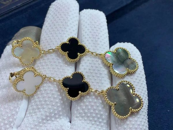 We guarantee all of our custom made jewelry to be 1:1 quality, and that what you see is absolutely what you get. Continuing to serve our customers and gain trust in our name is our mission. What you see pictured of this 1:1 Quality VCA Magic Alhambra 3 Motif Onyx & Mother of Pearl 18K Yellow Gold Drop Earrings is the actual item you will receive. Every detail possible can be seen in our pictures and we are proud of that, we here have nothing to hide. We want to show you every beautiful angle and edge of our inventory so you fall in love with the piece that’s just right for you.